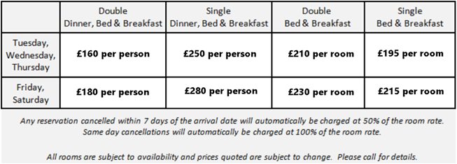 Each of our six bedrooms are traditional and charming with their own unique style and character.  With luxurious private bathrooms, each bedroom is designed for comfort and elegance.  Please scroll down for our current rates and to view each room – Willow, Chestnut, Cedar, Lime, Laurel & Wisteria.  For room availability or further information, please call or email us.